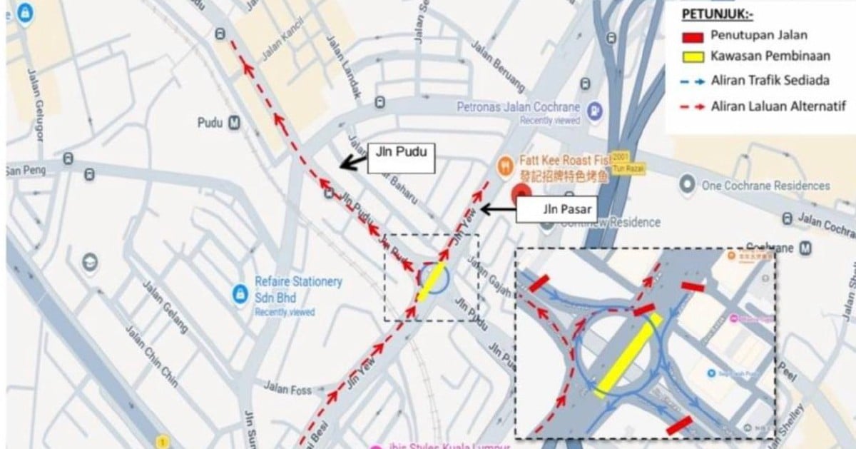KUALA LUMPUR – Pihak berkuasa tempatan mengumumkan penutupan sementara jalan susur di Bulatan Pudu menuju ke Jalan Sungai Besi, bersebelahan Balai Polis Pudu, mulai 24 Mac...